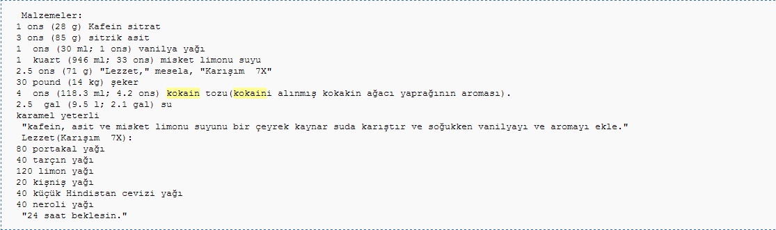 İçinde kokain olduğu kesin olarak kanıtlıdır ve formüllerde dahi geçer ; Link, Link, Link