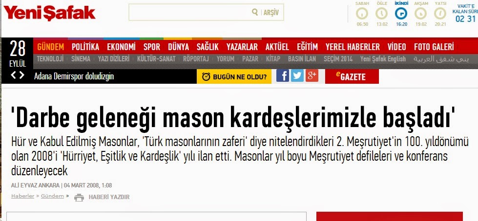 Ve dikkatinizi çekti mi bilmem, II. Meşrutiyet'in ilanı olan 1908 yılı hem masonlar, hem de bugünün İttihat ve Terakki'cileri tarafından kutlanır. ''Cumhuriyet'i biz 1908 yılında ilan ettik'' derler. Link, Link